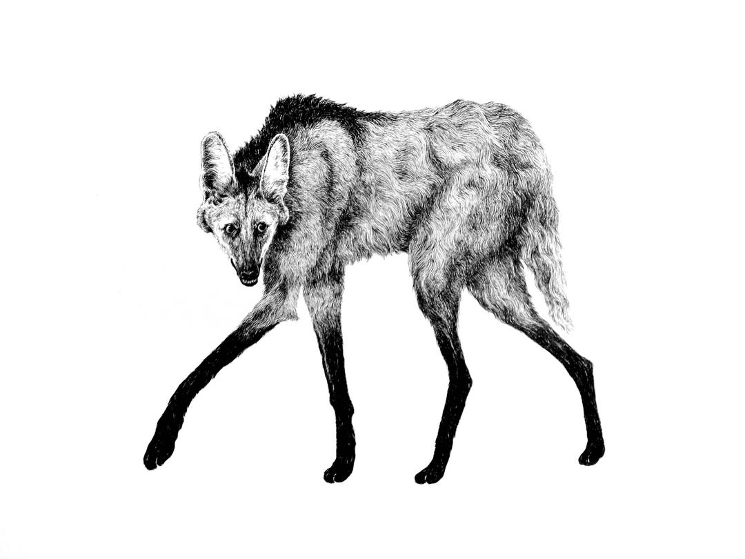 Maned Wolf Pen Ink Drawing Illustration On Paper Etsy